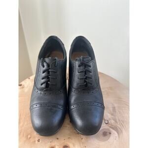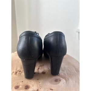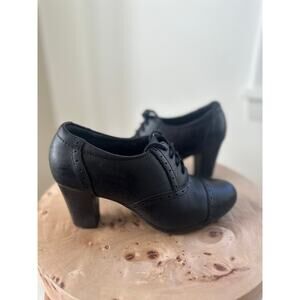 Classic Clarks oxford-inspired pumps with lace-up detail and sturdy block heel. Made from real leather uppers with manmade balance. Comfortable, timeless style for office, workwear, or dressy occasions.