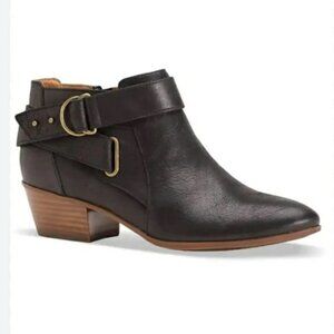 Clarks Black Leather Spye Belle Side Zip Buckle Details Western Style Bootie