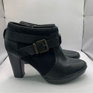 Clarks Black Leather Zip High Heel Ankle Boots Womens Size 10 M Style 2610493