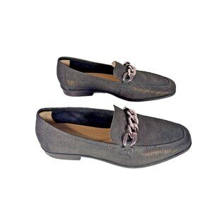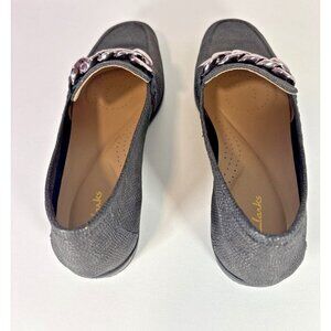 Clark's Black Metallic Gold Loafers With Chunky Chain Detail Women's 9.5M Preppy