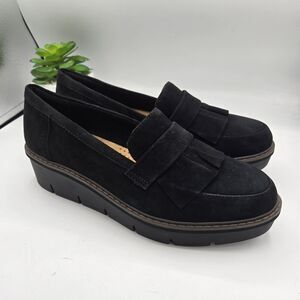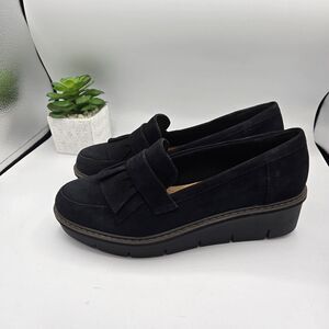 Elegant black suede loafers. Comfortable and stylish. Perfect for any occasion. in excellent condition barely worn.