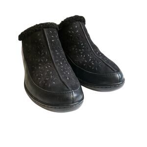 Clarks Black Suede Slip On Mules Shoes Women's Sherpa Lined Sz 7.5 M Comfort