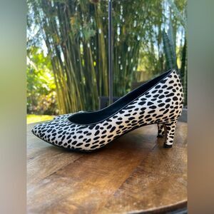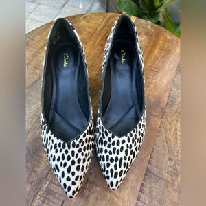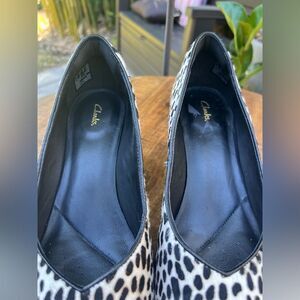 Clarks Black and Cream Cow Hyde Leopard Print Pumps size 8