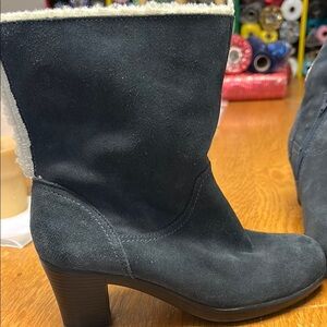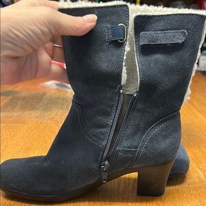 Clarks Blue Ankle Booties with Side Zipper and Suede Finish