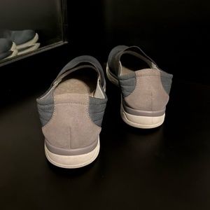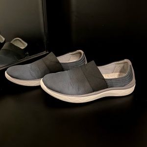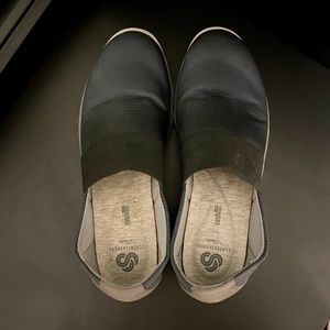 Clarks ombre blue sneakers with elastic strap. Soft, foam insole for cloud like steps. Arch and heel support for comfort. Neutral color goes well for a casual look.