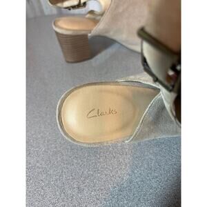 Clarks Bootie Deloria Gia Sand Suede Peep Toe Ankle Strap 10