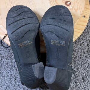Clarks Boots Bergen Womens Size 11 Leather Black Lace Up Block Heel Ankle Bootie