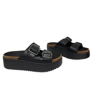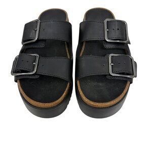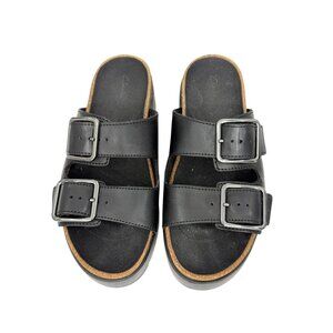 Clarks Botanic Black Leather Strap Sandals Shoes Women's Slide size 8 M