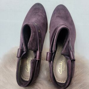 Clarks Breccan Shine Suede Somerset Ankle Boot Heeled Bootie Womens Size 7.5 M Good Condition See Pictures For More Details.