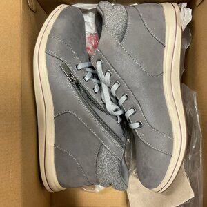 Item description from the seller The Clarks Breeze Glide sneakers offer a fresh take on sporty high-top style, meeting exposed zips and a comfortable lift. These practical and stylish lace-ups feature Clarks' renowned Cushion Soft™ technology and a slip-resistant sole, providing ultimate comfort for everyday wear. The functional side zip closure allows for easy on and off, making the Breeze Glide your perfect wide-fit choice for active casual days. 🔎 Item Details Brand: Clarks Style: Breeze Glide High-Top Sneaker Material: Manmade upper; Fabric lining; Manmade slip-resistant sole Color: Dark Grey Size: 8W (Wide Width) Condition: Brand new, never worn Origin: Imported Authenticity: Guaranteed 100% authentic – sourced directly from authorized distributor. ⚡ Key Features Cushion Soft™ PU foam footbed ensures superior padding and comfort. Functional side zipper closure for easy access. Laced high-top profile offers excellent ankle support and style. Slip-resistant sole provides enhanced traction and safety. Comfortable 1-inch heel and wide fit (W) for all-day wear. 📏 Measurements (approx.) Heel Height: 1 in US Size: 8W (Wide) 🚚 Shipping & Returns Fast shipping – usually within 1 business day. Secure packaging – items are carefully wrapped to protect during transit. Free returns – hassle-free returns accepted within 30 days. SKU2: 1025-37-1605 Custom label: VA-1605