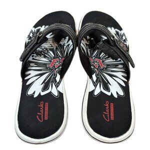 Clarks Breeze Mila Thong Sandals Adjustable White Black Comfort Slides Walking