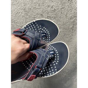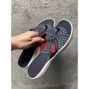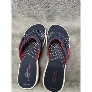 Clarks Breeze Sea Sandal Flip Flops US Size 8M Navy Blue Red Slip On 4th Of July