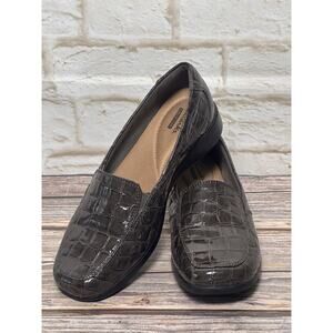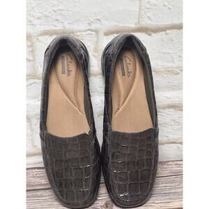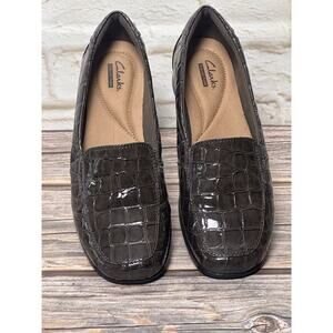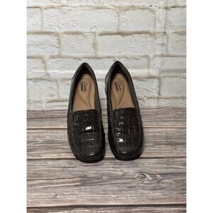 Clarks Brown Faux Croc Patent Leather Slip on Loafers Shoes Womens 7M