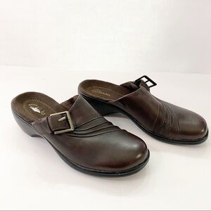 Clarks Brown Leather Comfort Clog Mule Shoes