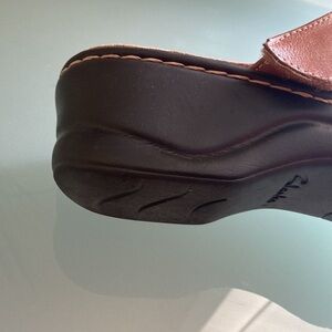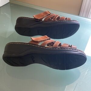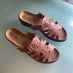 Clark’s Brown Leather Slides Wedge Sandals Size 9 Wide