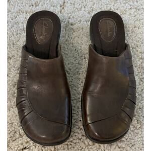 Clarks Brown Leather Slip On Clog Mules Shoes 7 Narrow