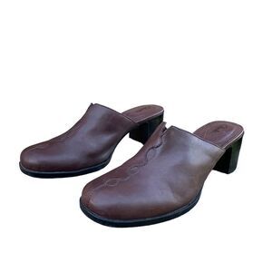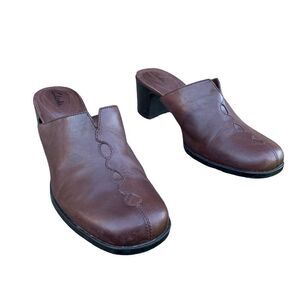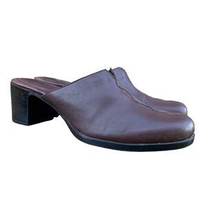 Clarks Brown Leather Slip on Everyday Heeled Mules Comfort Shoes Women’s size 10