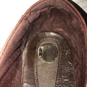 These Clark loafers have some wear- to the inside and outside soles. Leather looks good. Nice color. Women’s size 9.5