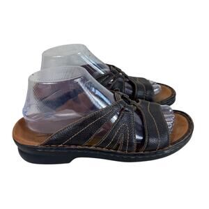 Clarks Brown Pebbled Leather Strappy Slip On Low Heel Slide Sandals Size 8