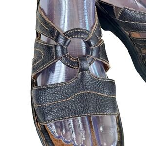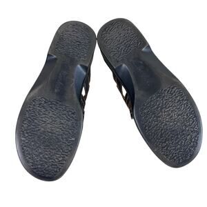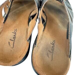 Clarks Brown Pebbled Leather Strappy Slip On Low Heel Slide Sandals Size 8