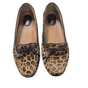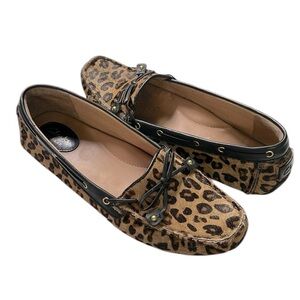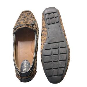 Clarks Brown and Black Calf Hair Leopard Loafers