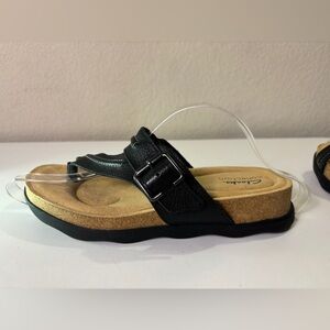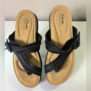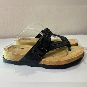 Clarks Brynn Madi Black Leather Thong Comfort Sandals 8.5