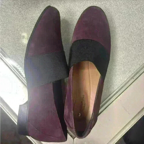 UNSTRUCTURED by CLARKS Burgundy Suede Low Heel Loafers