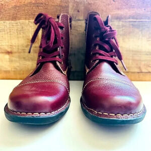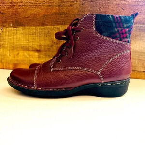 Clarks Burgundy Whistle Bea Leather Ankle Laces Boots