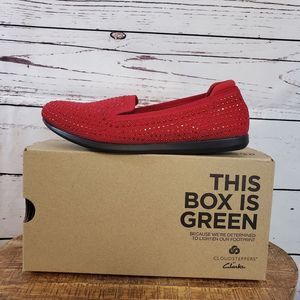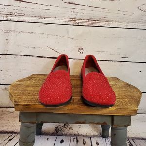 Clark’s CLOUDSTEPPERS Carly Dream Sparkle Red Rhinestone Slip On Loafers 7.5 NEW