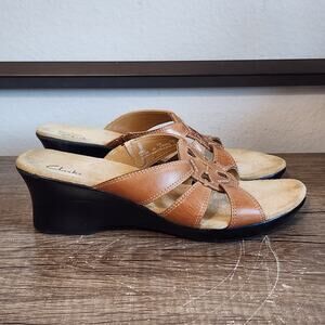 Clarks Calenne Women's Wedge Sandals Shoes Size 9 Brown