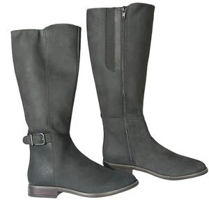 Clarks Camzin Black Leather Block Heel Knee High Boots sz 8.5