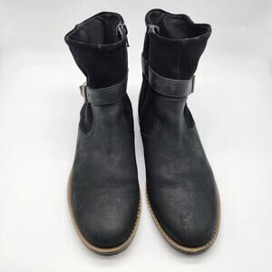 Clarks Camzin Strap Ankle Boots Black Leather Side Zip Buckle Bootie Size 8.5M