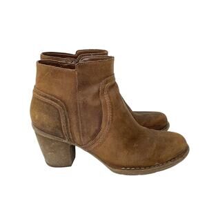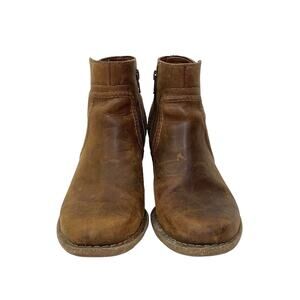 Clarks Carleta Paris Sz 9.5 Brown Distressed Oiled Nubuck Leather Ankle Booties