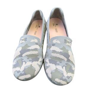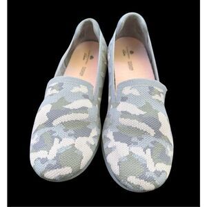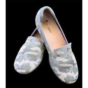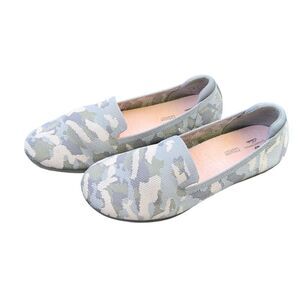 Clarks Carly Dream slip-ons. Khaki camo. Round toe. Washable! Comfort, versatile, and on trend. Size 9.