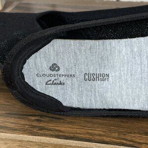 Clarks Carly Wish Womens 7.5 Shoes Black Tiger Print Slip On Cloudsteppers Flats