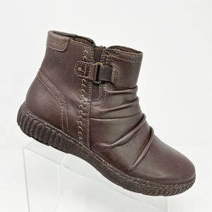Clarks Caroline Orchid Chocolate Brown Leather Flat Ankle Boots Size 9.5 Wide Fall Comfort