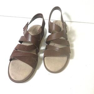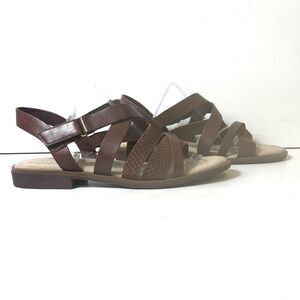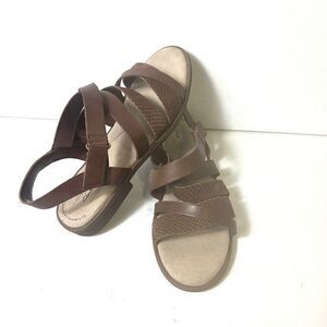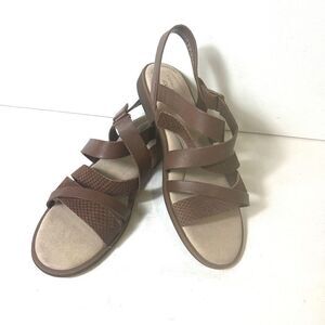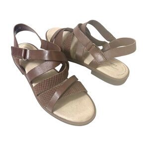 Clarks Casual Sandals Brown Leather Womens 8.5W Sling Back Strappy Flat Open Toe