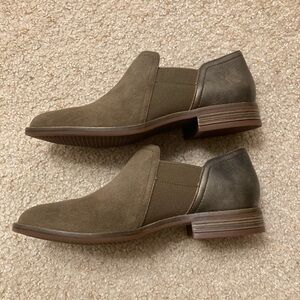 Clarks Cazmin Step Loafer, Women’s size 9. Super cute low cut boots / ankle boots. Brown suede. OrthoLite footbed for comfort. In like new condition! No rips, holes, or stains!