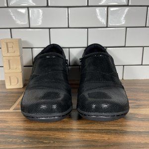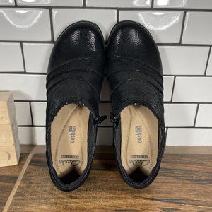 Clarks Channing Kim Women's Size 6.5 Shoes Black Leather Lizard Print Loafers