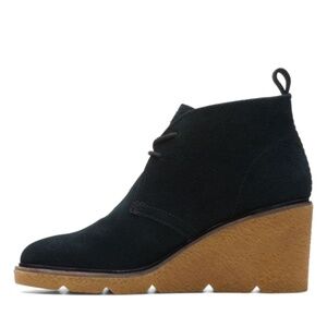 Clarks Clarkford DBT Black Suede Chukka Ankle Boots Leather Wedge heel Booties 9
