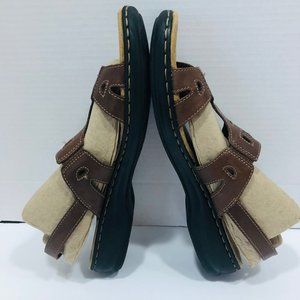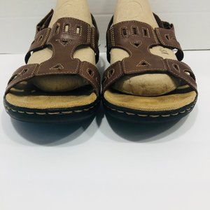 Clarks Clark's Sandals 11 Brown Open Toe Strappy Sling Back Cushioned Shoes