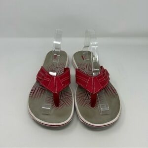 Clarks Classic Red Slip On Thong Sandals Size 12 Summer Fun Beach