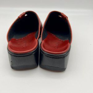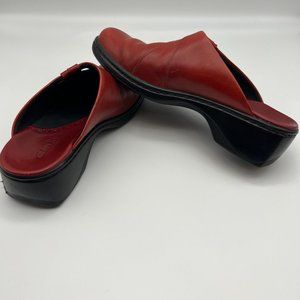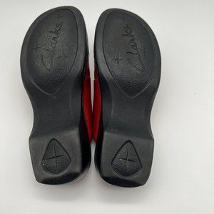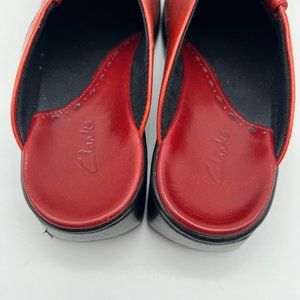 This pair of Clarks Clog Style shoes with leather upper is appropriate for any season. Just slip on and go. Very clean but there is a small bit of scuffing on the toes. Please refer the the pics.