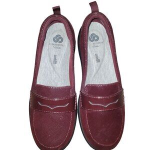 Clarks Cloud Steppers Penny Loafer 7.5 Shoe Work Burgundy Office Preppy Academia