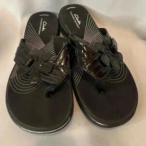 Clarks Cloud Steppers Women’s Brinkley Flora Black Patent Thong Sandals