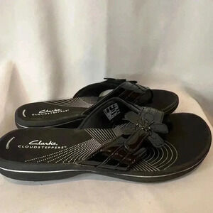 Clarks Cloud Steppers Women’s Brinkley Flora Black Patent Thong Sandals
