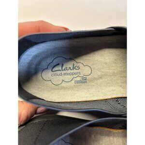 Clark’s Cloudsteppers, Black Elastic Bands, comfy, no signs of wear, very clean, smoke free pet friendly home. No issues, women’s size 6.5