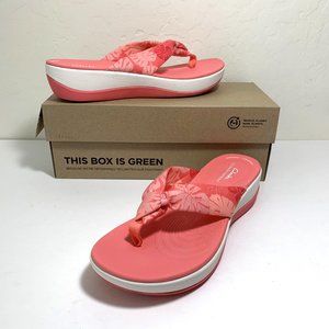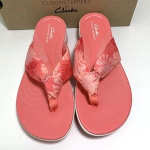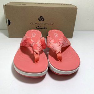 NEW Clarks Cloudsteppers Arla Glison Sandals Flip Flops Coral Print Size 10 NIB