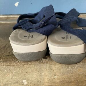 Fabric upper in navy blue. Velcro closure on the back strap. Have been worn with slight signs of wear but in good condition. See pics