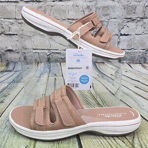 Clarks Cloudsteppers Breeze Piper Slides Women’s 6 M Beige Comfort Sandals NWT